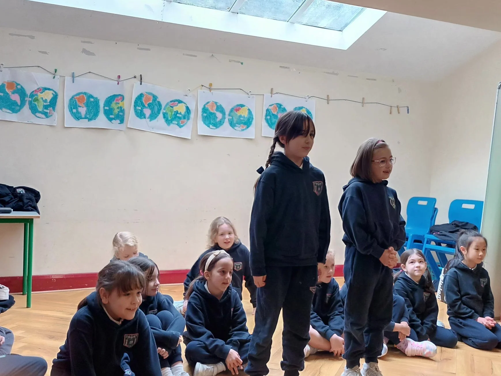 The girls from second class enjoying their new classroom. Thank you to the parents who undertook this lovely project during the summer holidays.